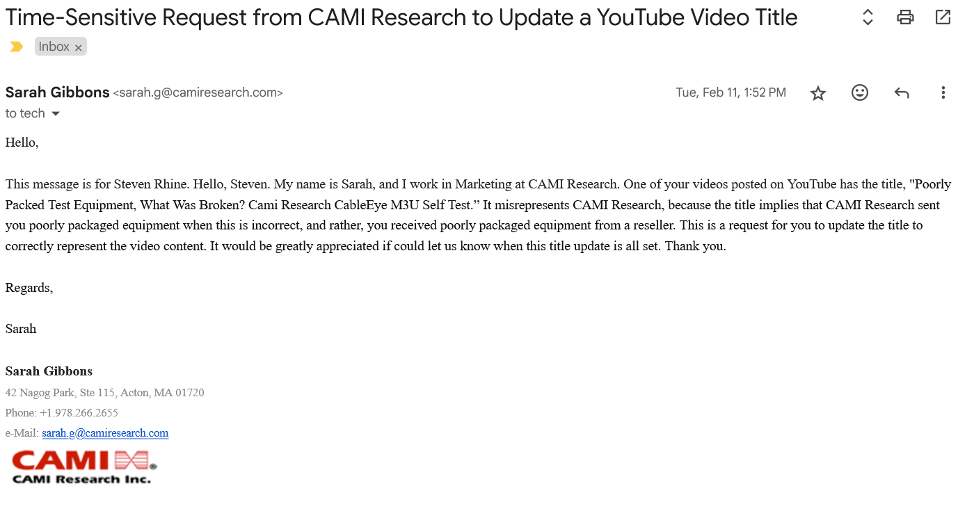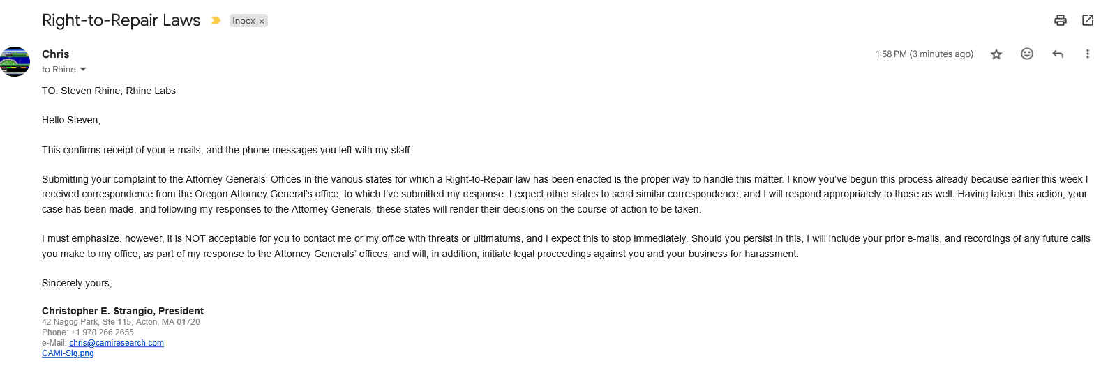Cease & Desist: Cami Research wants me to pay..> 09-Sep-2025 14:15 164558063
